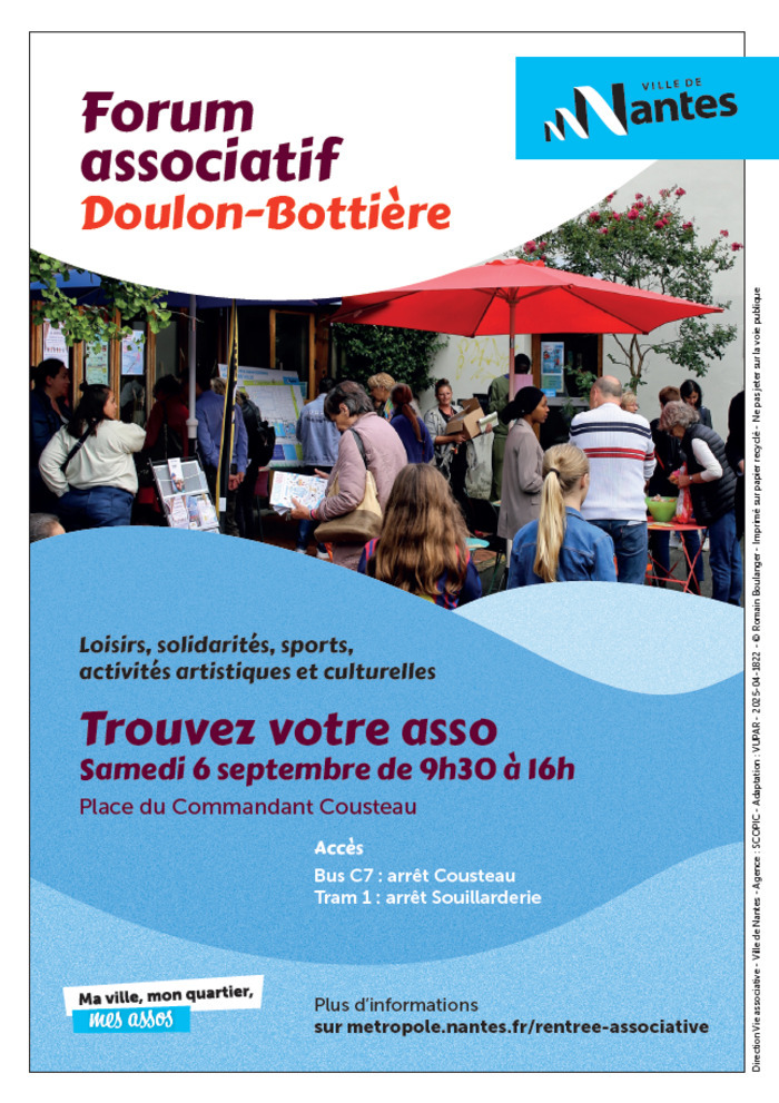 06sept9h3016h00Forum des associations du quartier Doulon-BottièreVenez découvrir l'actualité des projets de l'association avec Céline et Liam !