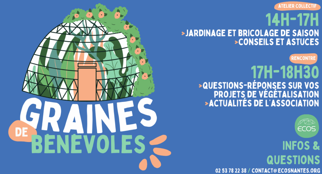 A partir de 17h et jusqu’à 18h30, le créneau est dédié aux échanges sur vos projets de végétalisation et sur l’actualité des projets de l’association.
