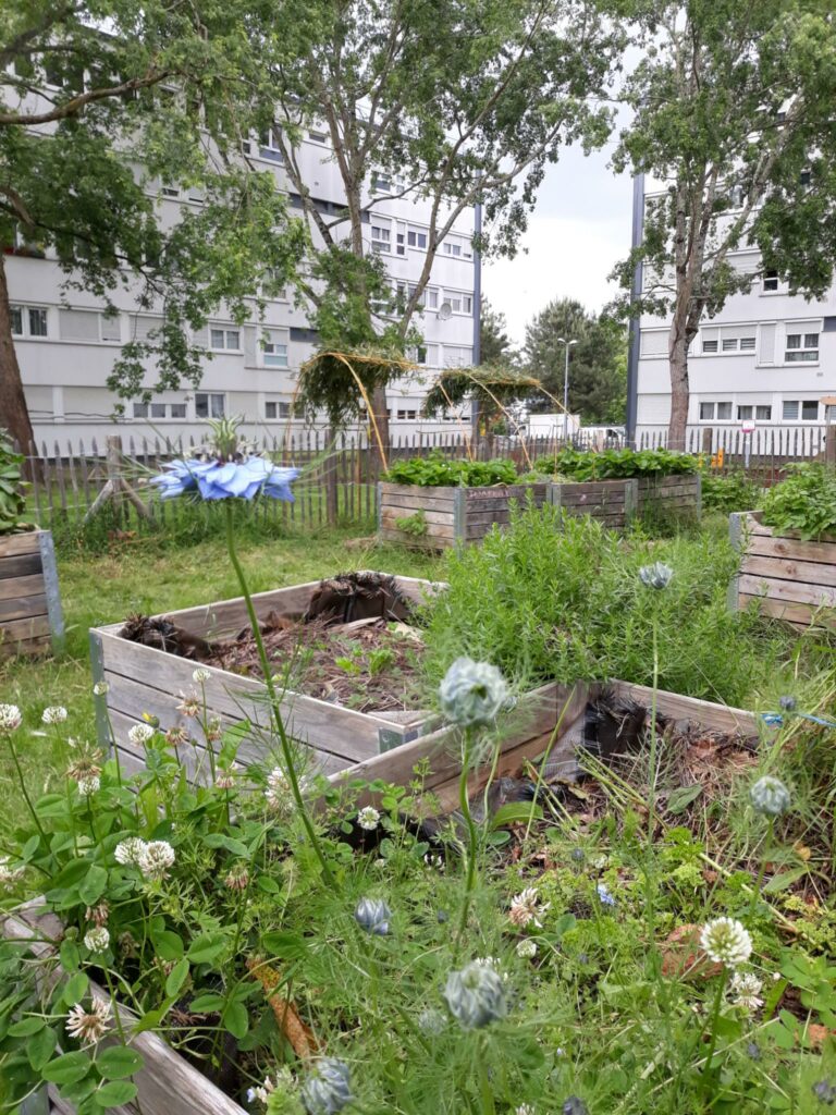 Depuis l’automne 2021, ECOS est chargée de la conception et l’animation du jardin collectif avec la complicité des habitant·e·s et de Nantes Métropole Habitat.